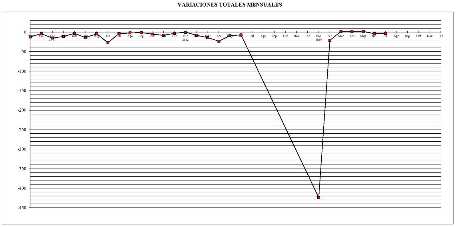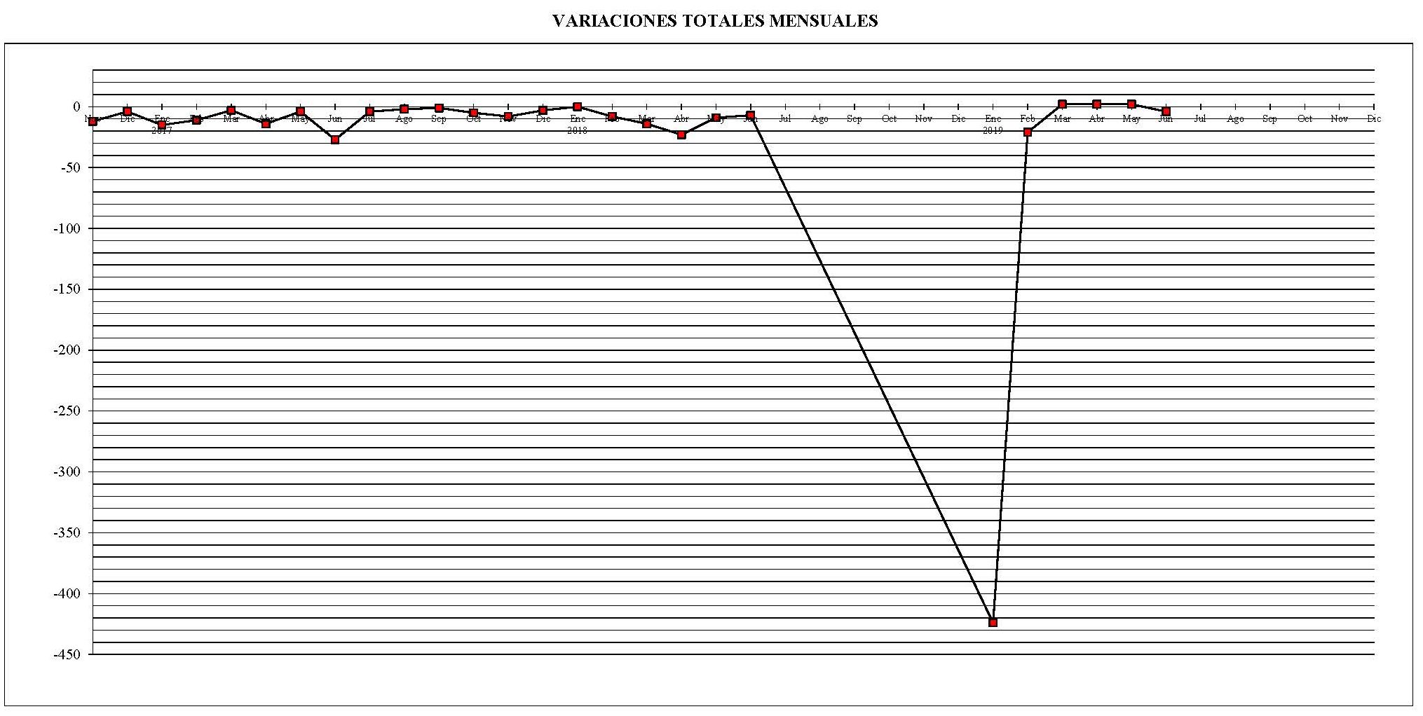También pongo otro gráfico con las variaciones mensuales en el parque total de máquinas desde el pasado mes de noviembre del año 2016 en comparación con el mes anterior.