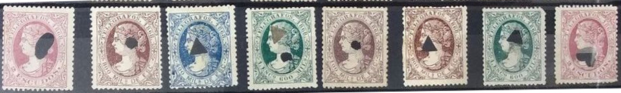 Primera serie de Vaquer variedades, matasellos, perforados, destinos etc