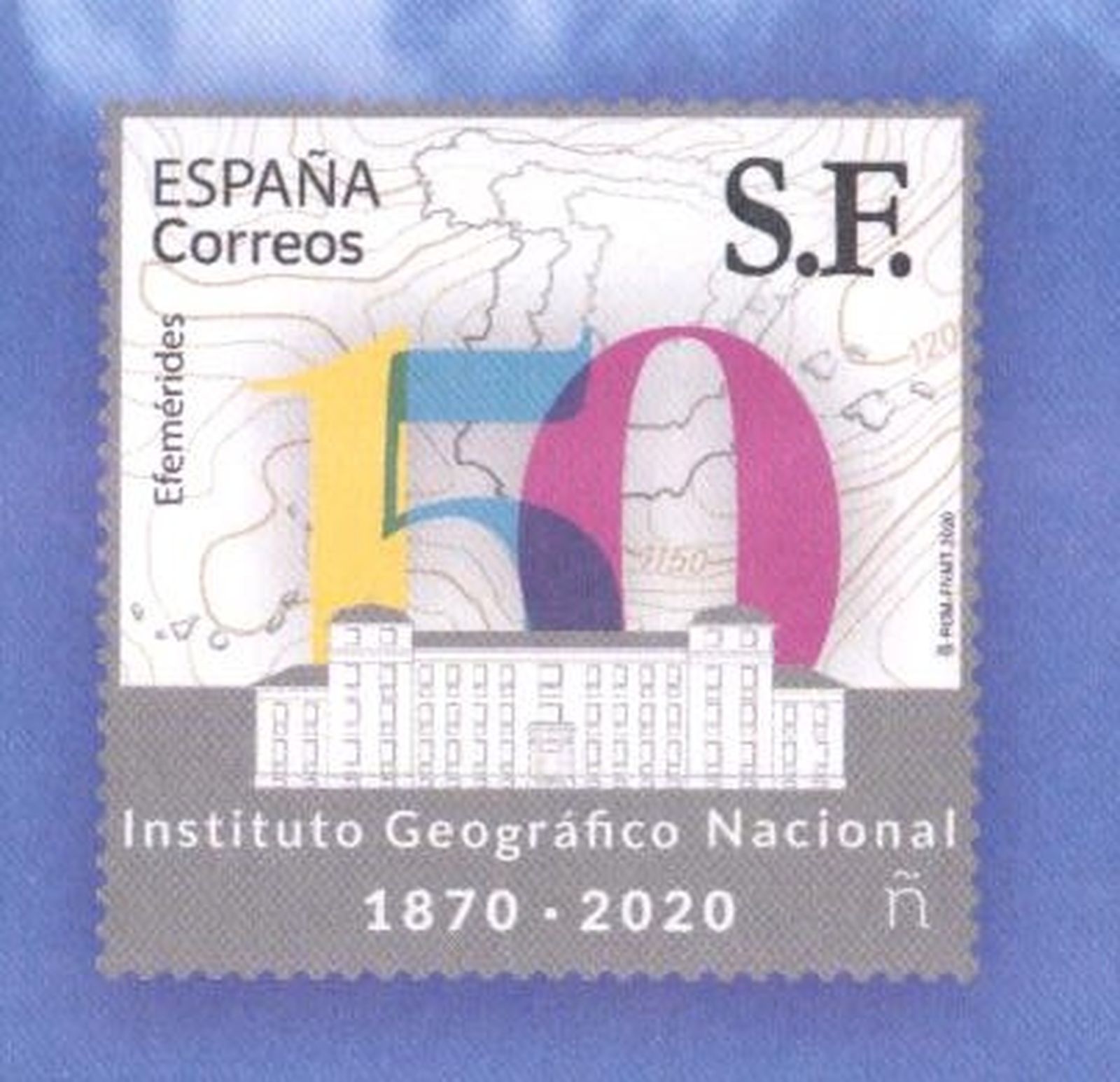 En este ocasión se publicita el sello de la hoja bloque dedicada a conmemorar 150 aniversario del Instituto Geográfico Nacional Cantabria, que se emitió con fecha del 14 de mayo.