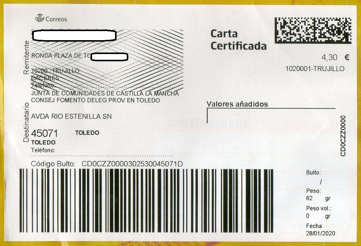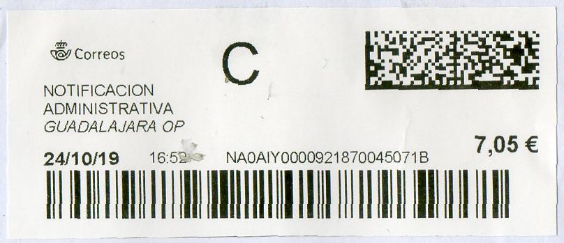 2909994-MALAGA SUC 5 / CARTA CERTIFICADA / 14-10-19