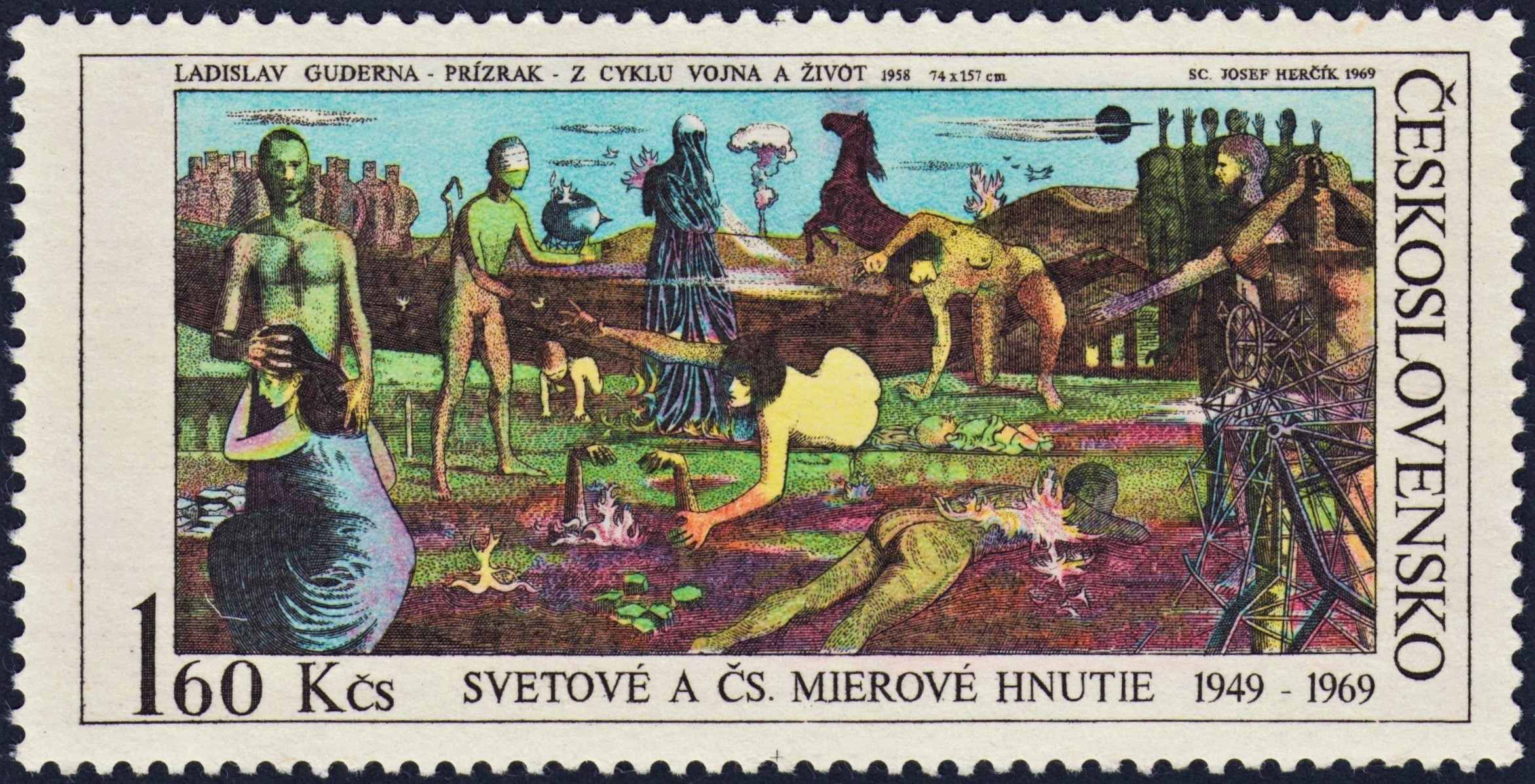 Este gran sello checoslovaco lo pusimos hace tiempo, pero sin una buena imagen de la pintura original de Guderna que graba en una sola placa Josef Herčík.