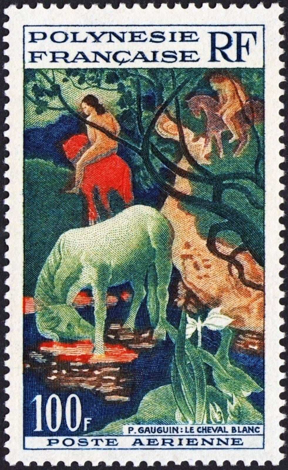 Por ser uno de los más bellos sellos del mundo, recuperamos el caballo blanco de Gauguin (Polinesia Francesa, 1958) expuesto en la página anterior para añadir un par de cosas más. La primera es incidir en la muy segura autoría de Pierre Gandon, tanto por el estilo en sí mismo del grabado, como por las varias pruebas firmadas que hay por la red, entre ellas esta que exponemos y que parece una prueba de punzón coloreada a mano, quizá comercial, similar a la enseñada anteriormente y que entonces erróneamente calificamos sin más de prueba de impresión.