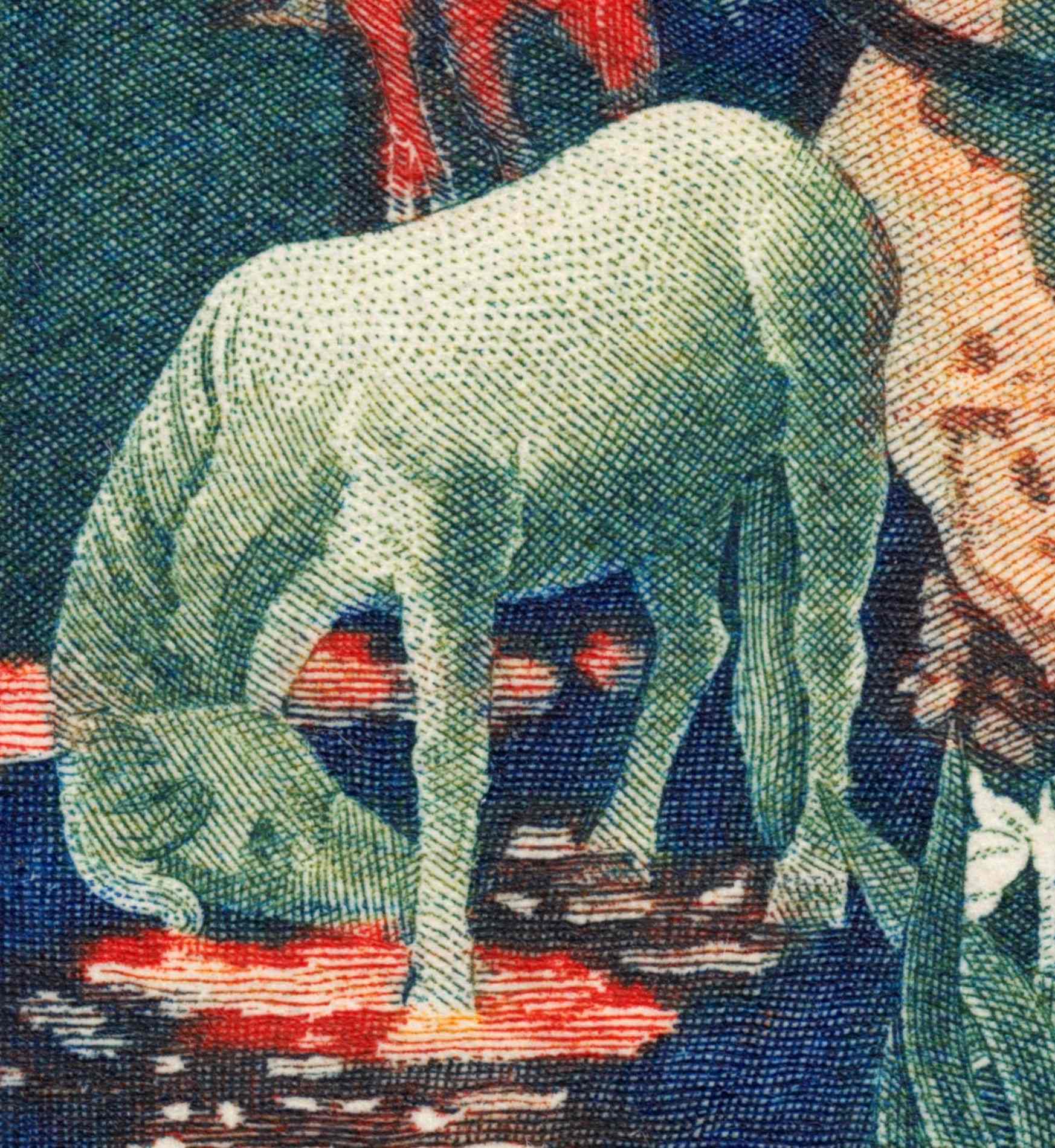 Y la segunda es decir que este sello sólo requirió de un único grabado, después multiplicado por la moleta en el cilindro de impresión de la TD-3. Por mediación de Florián, un antiguo empleado de los talleres de impresión franceses, Papy24 (blog-impressions-timbrees.blogspot.com), nos ha sacado de dudas respecto a los tres colores empleados en la exquisita confección calcográfica del sello: azul, rojo y amarillo pálido.