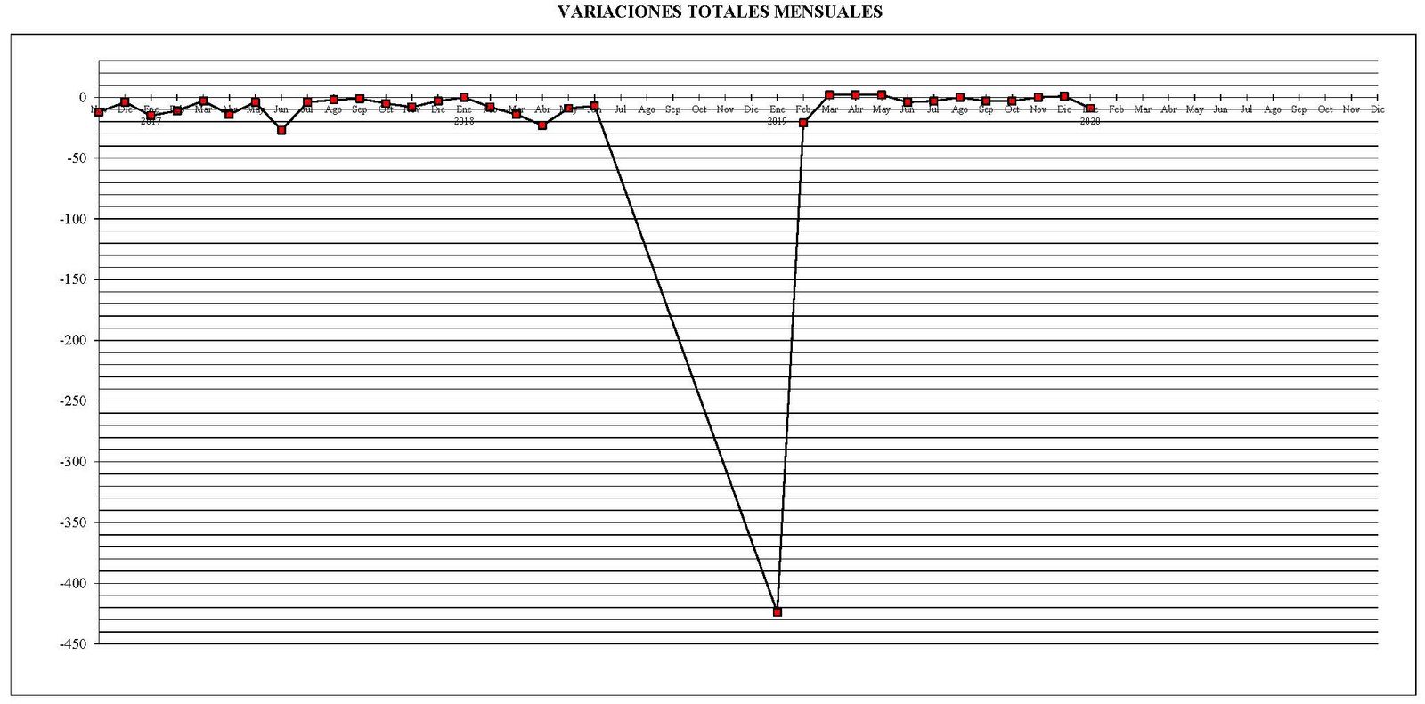 También pongo otro gráfico con las variaciones mensuales en el parque total de máquinas desde el pasado mes de noviembre del año 2016 en comparación con el mes anterior.