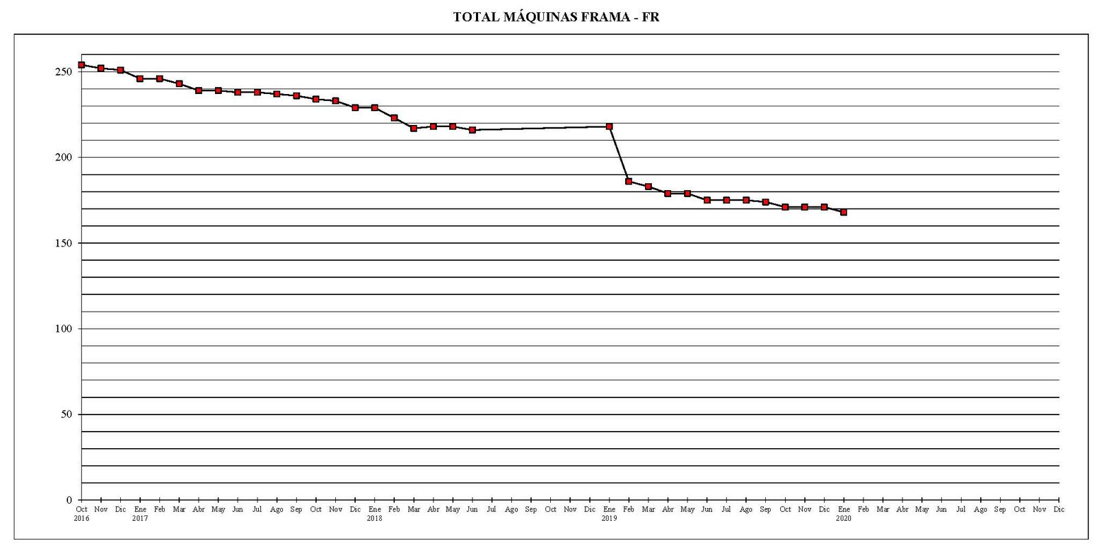 Desde el mes de octubre del año 2016 al actual, el parque total de máquinas ha sufrido un descenso de 634 unidades.