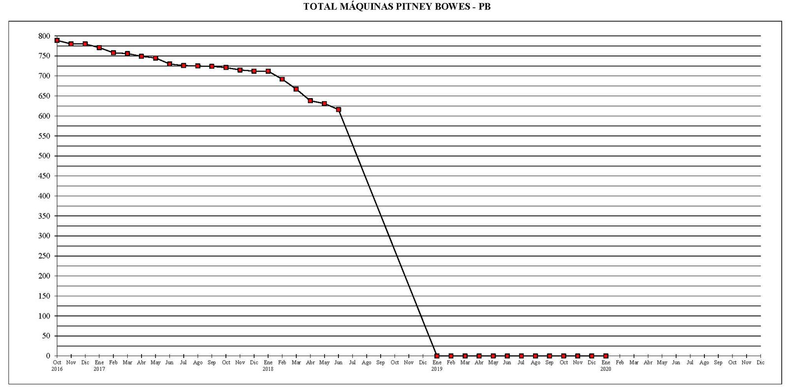- Al 31 de enero del año 2020, existían un total de 780 máquinas de franquear digitales en funcionamiento. El parque existente, se había reducido el 9 máquinas en comparación con el final del mes anterior.