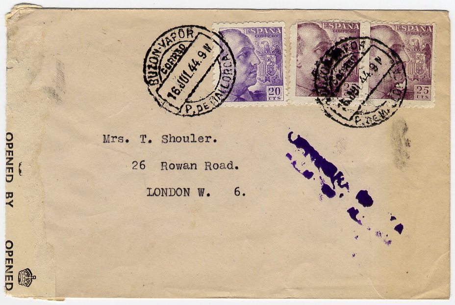 Puente curvo BUZON - VAPOR | CORREO | P. DE MALLORCA | 16 JUL 44