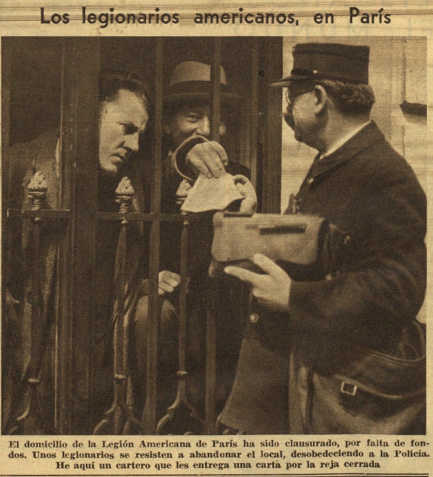 Por eso es importante la noticia de la foto: la idea de la asociación nació en París y por ello su nombre a semejanza de la Legión Francesa aunque con fines más caritativos. Y los estaban poniendo de patitas en la calle por no tener un franco para el alquiler!