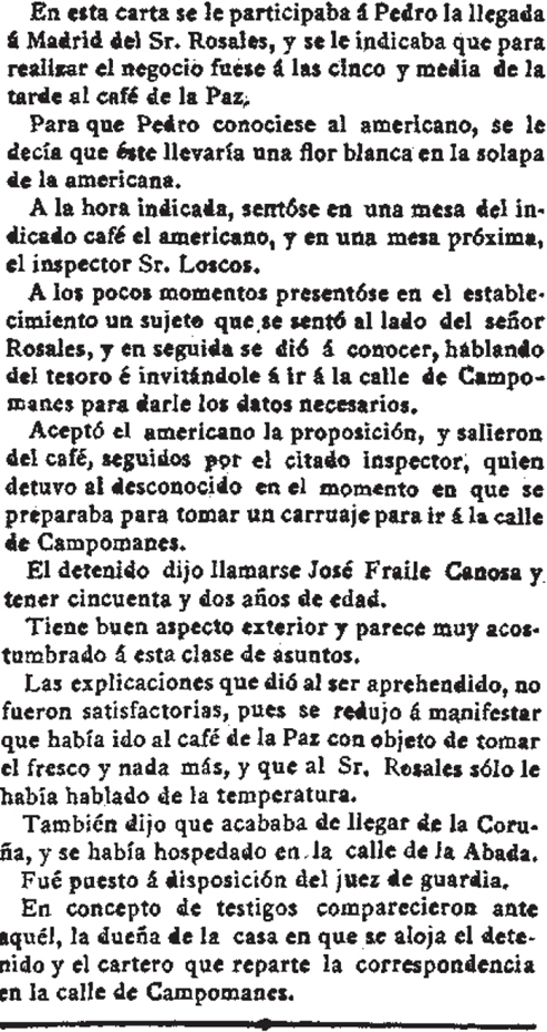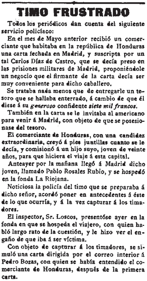 Y otra noticia breve en la sección Desde Barcelona que le pone nombre a este timo, al parecer, de origen español: