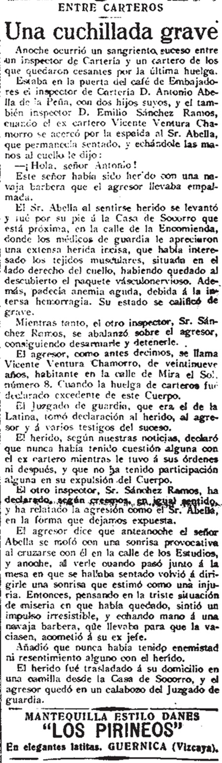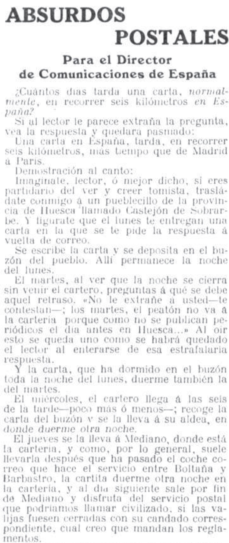 Mucha hemeroteca mi estimado!! Para las noticias que hay hoy en día prefiero leer las de hace un siglo que me dan aire... Y se encuentran muchísimas curiosidades postales que os comparto.
