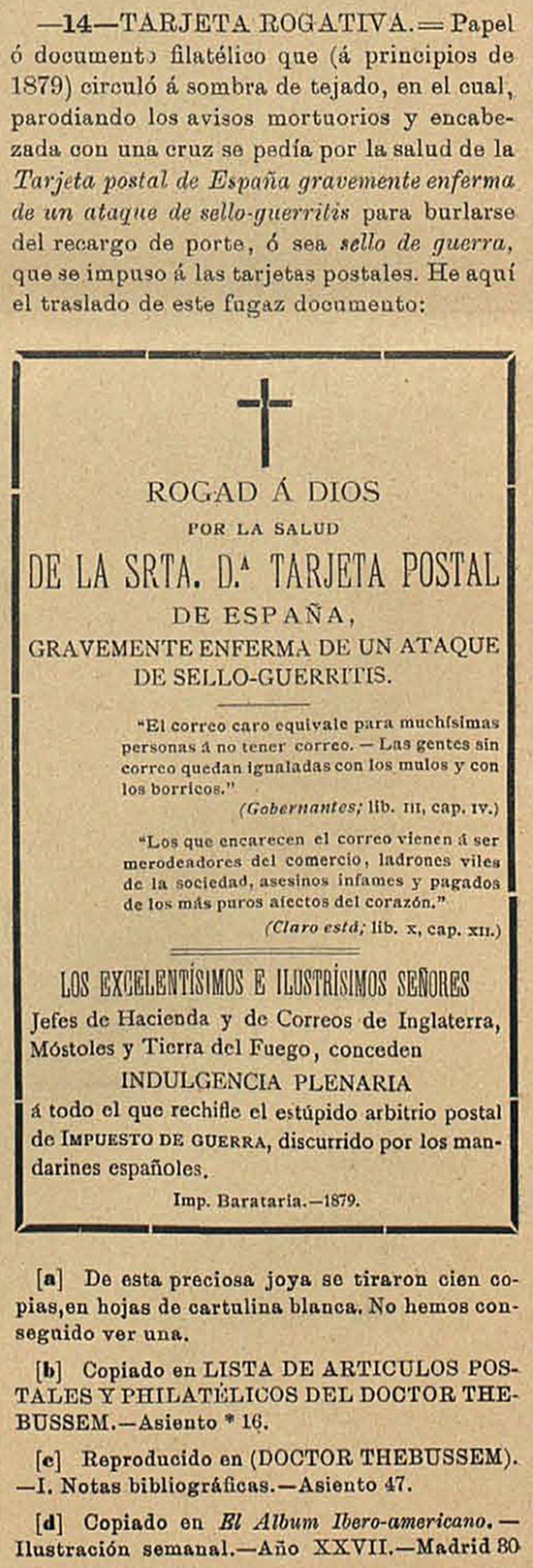 Una curiosa de Thebussem y su lista de artículos postales y philatélicos. Menudos zascas daba este hombre con mucho estilo!