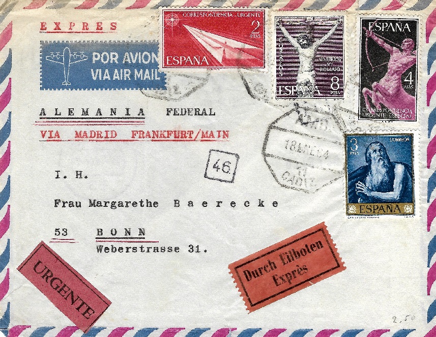 Sale en el AMB./18.ENE.64/11/CADIZ y llega a Bonn el 21.