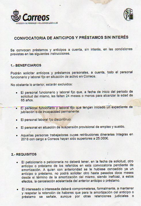 CONVOCATORIA DE ANTICIPOS Y PRESTAMOS SIN INTERES