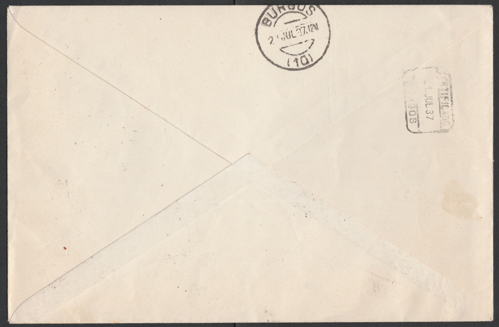 Sobre filatelico con la serie invertida, creo que todos son hi menos el 5 y 10 centimos que son hxi, con local de Sevilla doble impresión.