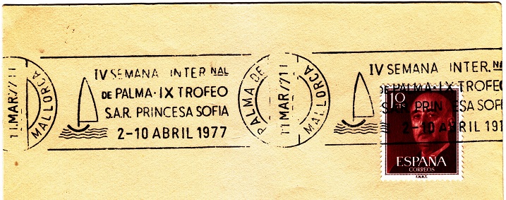 año 1977 : IV Semana.IX Trofeo. Este año salió su autorización , pero a pesar de anunciar el Servicio Filatélico de Correos, que pasaba a ser utilizado en 1978, comenzó a utilizarse por lo menos los dos primeros días, los cuales poseo en mi colección. (Afinet nº 17)