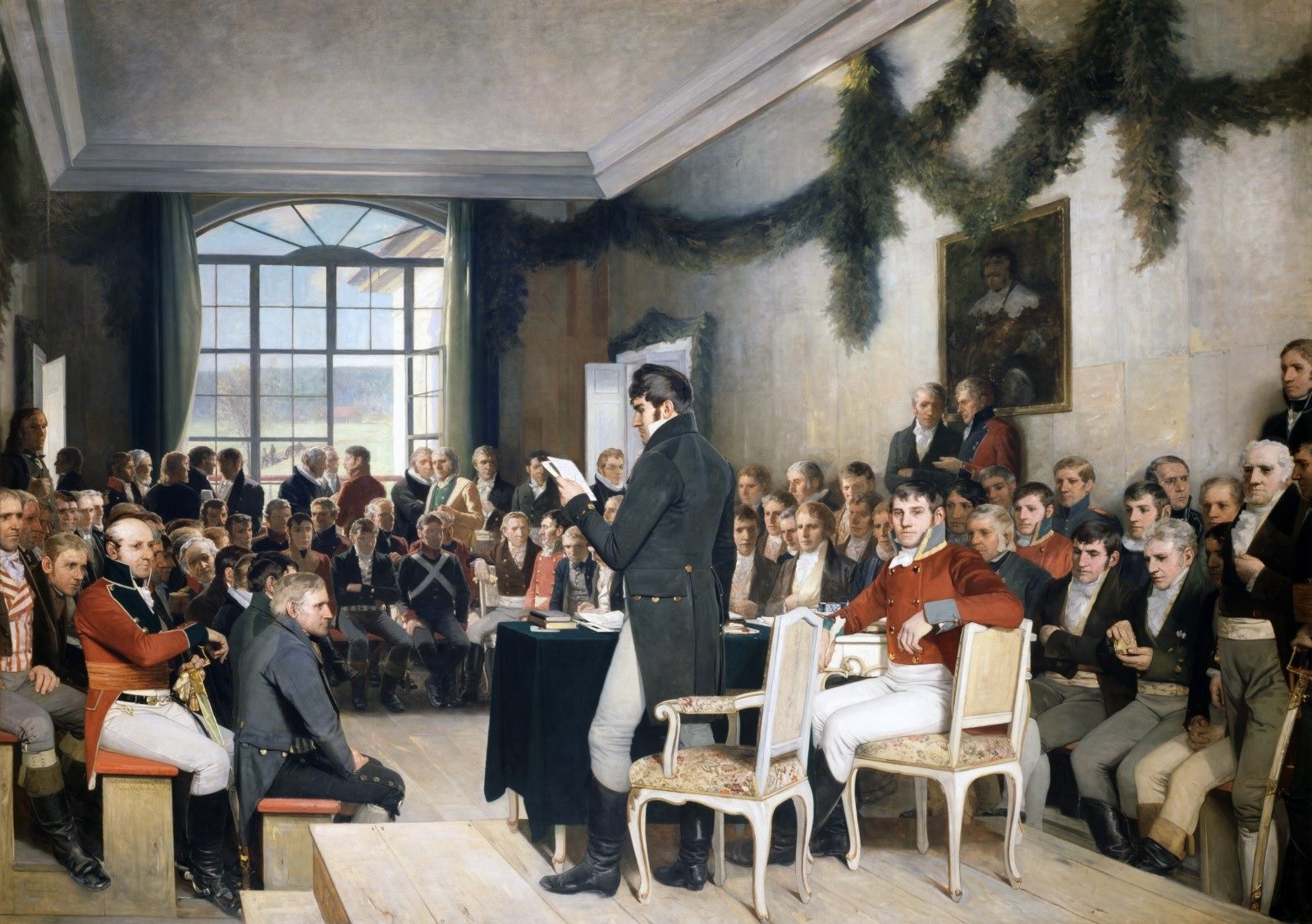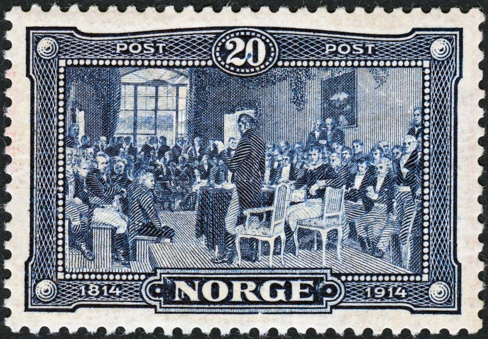 Y precisamente en ese centro de atención genialmente conquistado, Løkke-Sørensen retrató a su maestro y amigo Henry Welde dentro de la pintura de Wergeland. «Quise homenajear a Welde», contó Løkke-Sørensen en el serial de la revista Norsk Filatelistisk Tidsskrift, «y lo puse allí sentado como un constituyente más. Después el sello pasó por la revisión minuciosa del Posten y nadie se dio cuenta».