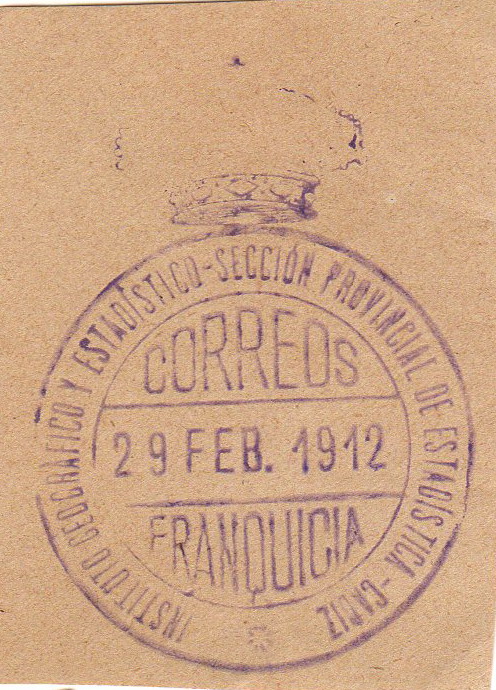 Querido Amigo "Lego" de "San Filatelio", aquí traigo una Franquicia, que aunque está catalogada creo?, en las del Gobierno, pero creo que adelanta la fecha a la catalogada: