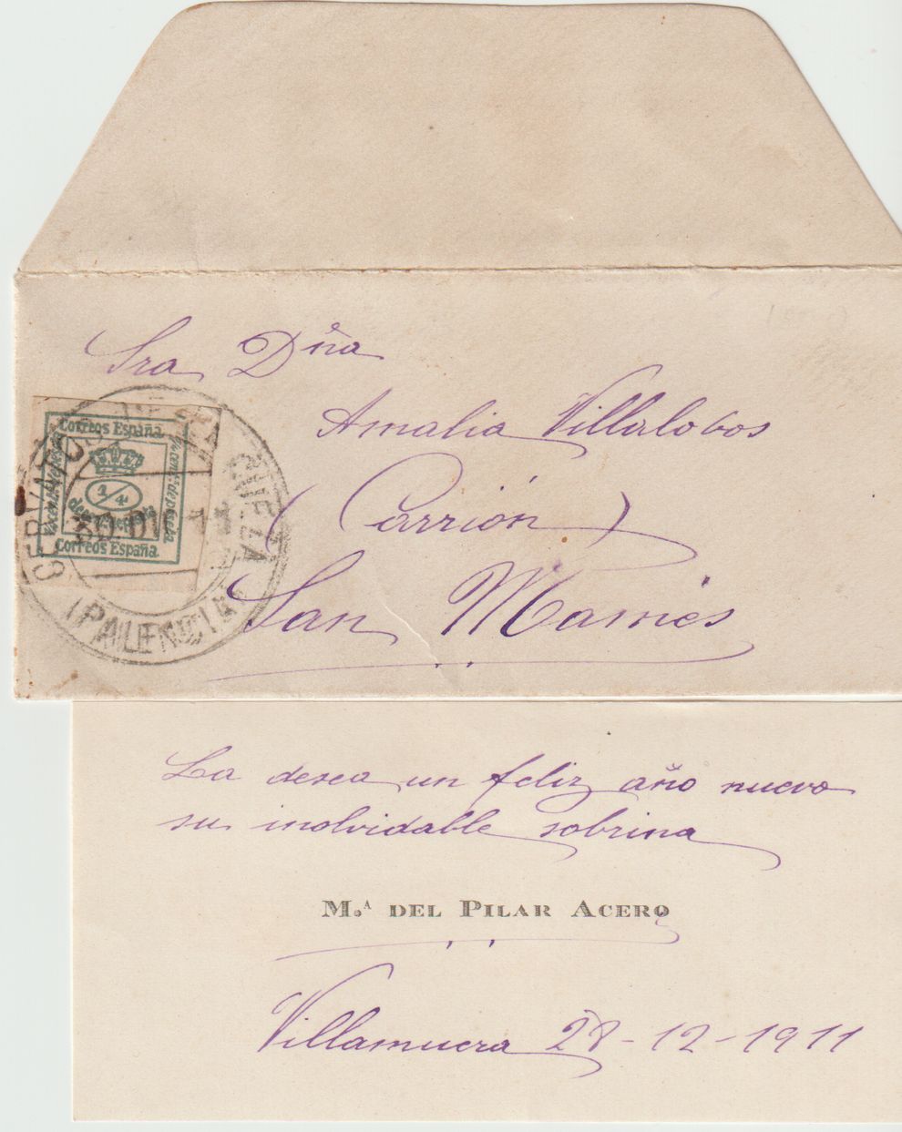 Subo este sobrecito, con tarjeta de visita incluida, con tarifa de impreso, 1/4 de 1873. La carta es de 1911.