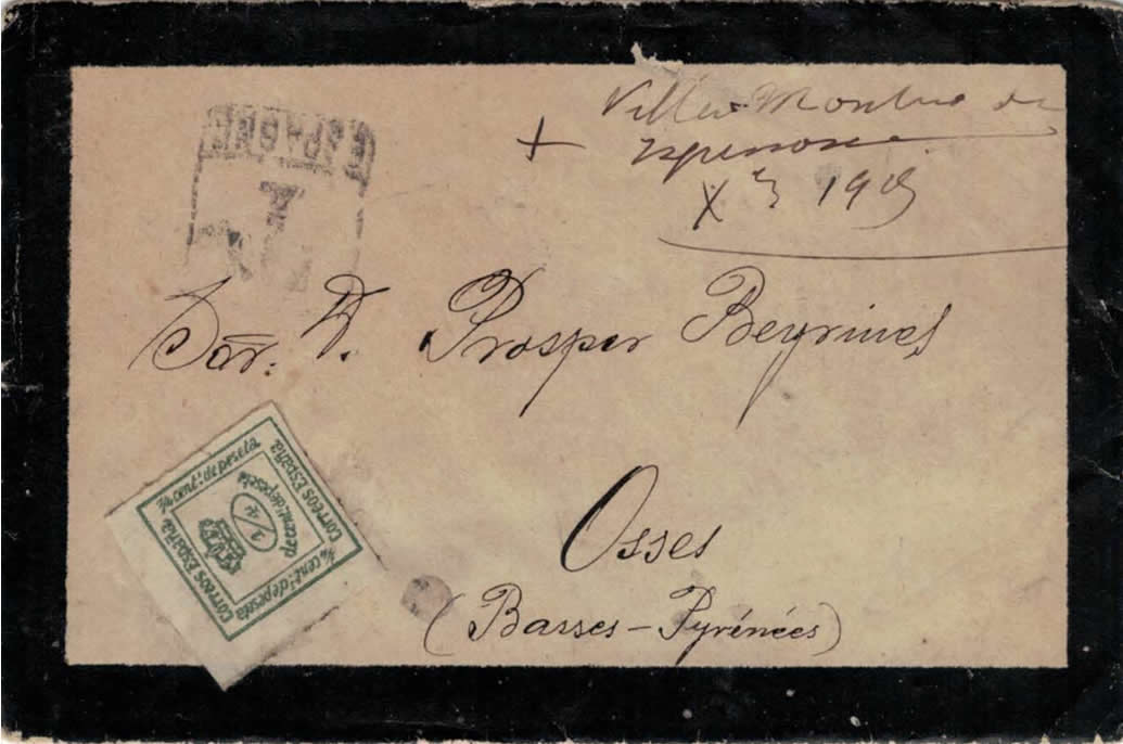 En cuanto a los sobres tranqueados con sellos de ¼ cént. al extranjero, alguno evito ser tasado como el siguiente que pongo de ejemplo, aunque la mayoría no lo consiguió.