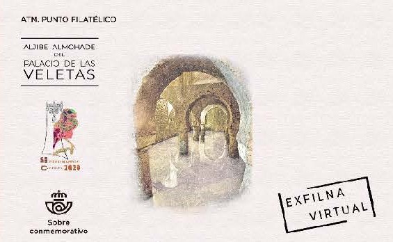 El «Palacio de las Veletas», también conocido como Casa de Los Aljibes, esconde bajo su sobrio claustro uno de los mejores aljibes hispanomusulmanes conservados en la Península Ibérica. Éste ha sido elegido para ilustrar la segunda ATM dedicada a la EXFILNA 2020. Cáceres que por la Covid-19 será virtual. Se estima que su construcción se produce en los siglos X-XI con una planta ligeramente irregular para adaptarse al nivel geológico, es de unos 14 m. de largo por 10 de ancho, algo corriente en otros edificios de este tipo, pero lo que más le distingue es su estructura de cinco naves cubiertas con bóveda de cañón, la cual descansa sobre arquerías paralelas formadas por dieciséis arcos de herradura sustentados en doce columnas. Su capacidad de agua almacenada es de unos 700m3 totalmente lleno.