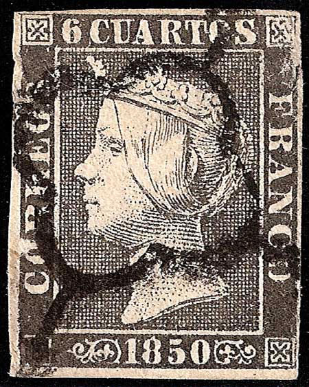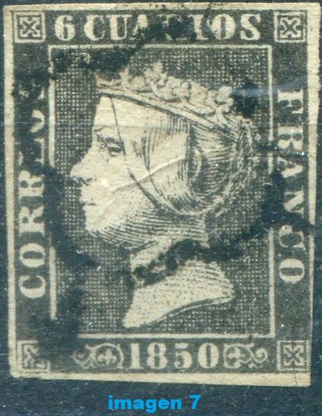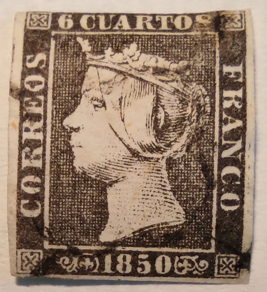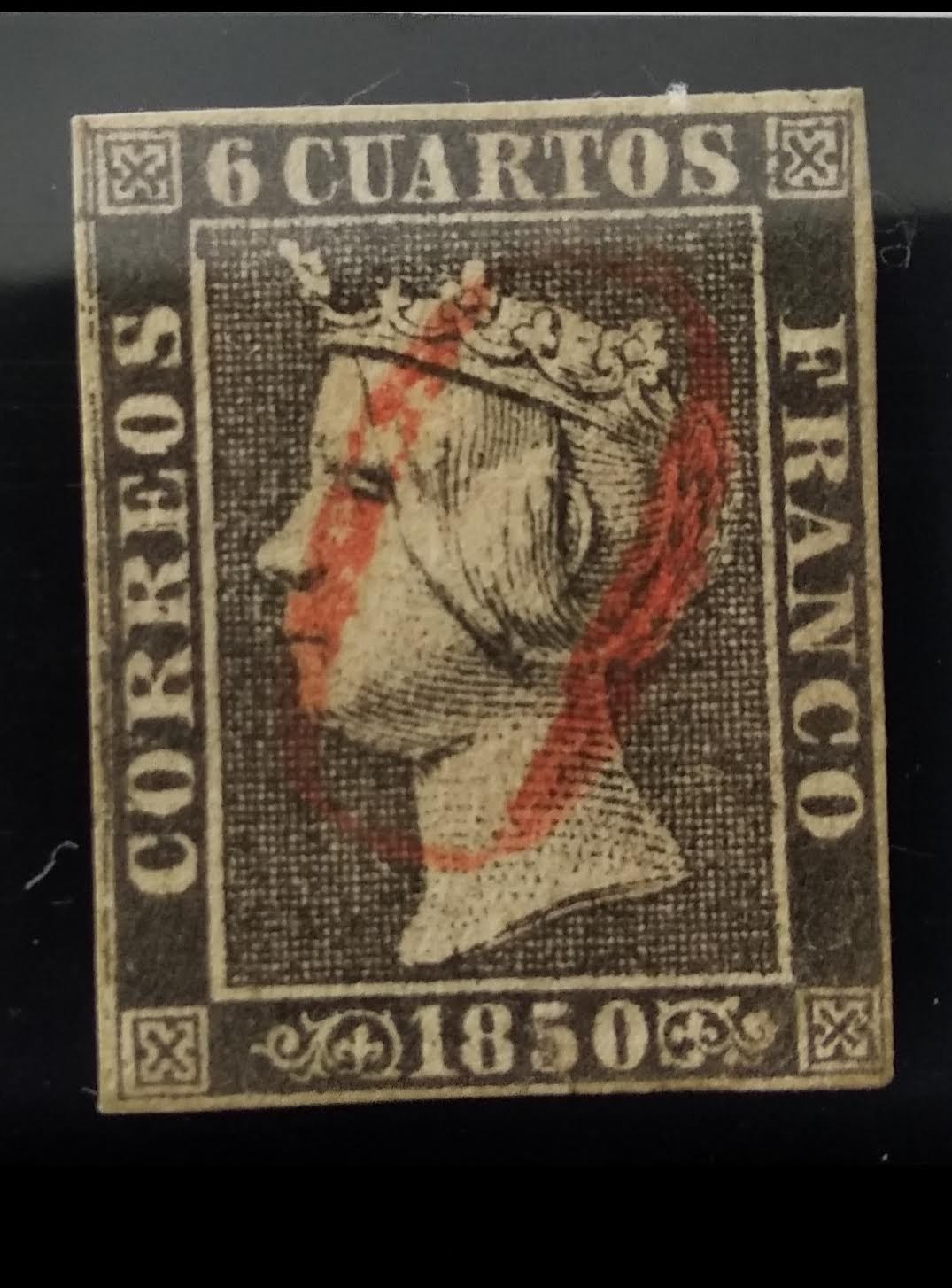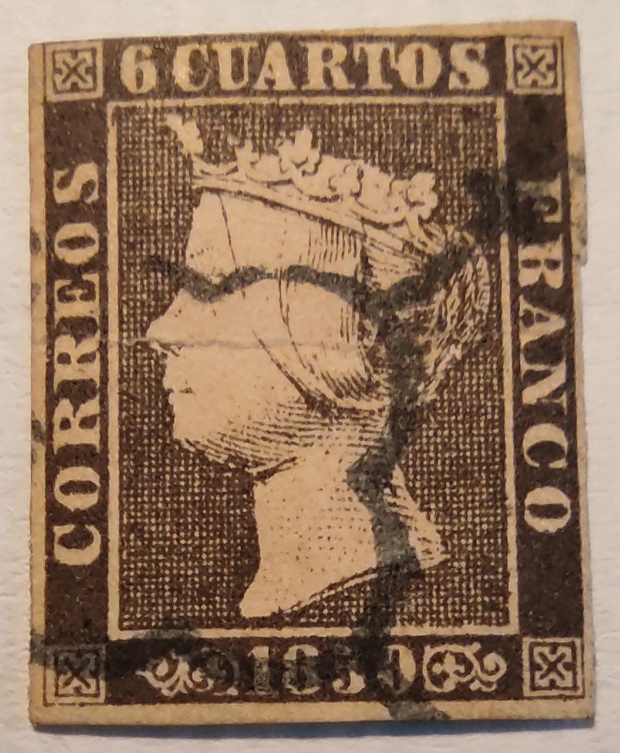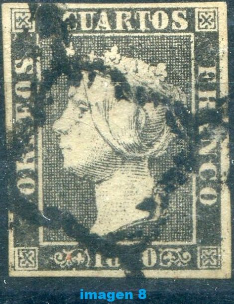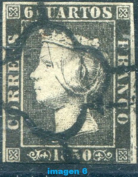 En mi opinión este sello pertenece a la Plancha I, Tipo 10 presentando la variedad 24 (un punto blanco al lado de la letra O de FRANCO según el Guezala, o quizá mejor nombrado como el Arcaute. A su vez me parece, y es una hipótesis que quiero contrastar con los "plancheadores del 6 cuartos" :wink:, que la parte derecha del sello presenta un defecto de impresión en dicho borde, notándose la parte más acusada encima de la letra F. ¿Que me podeis decir?. :?: