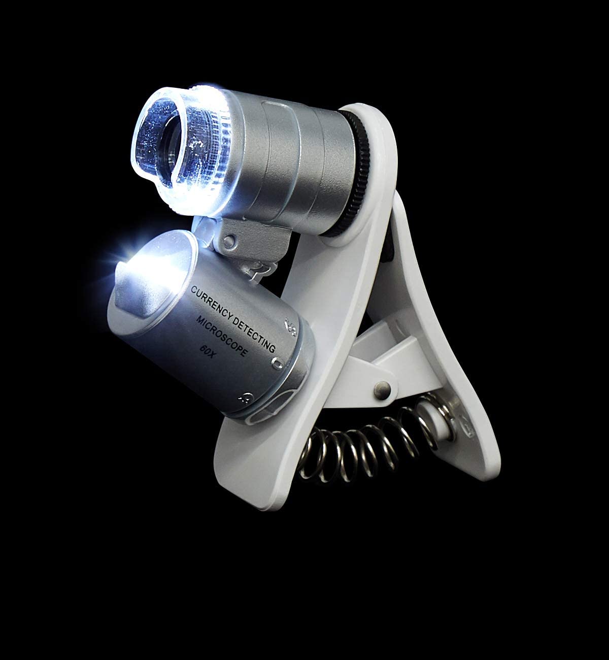 :arrow: Microscopio de Bolsillo, 60x LED Clip-Type Mini Microscopio para Teléfono Móvil,