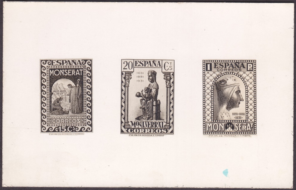 Preciosa tarjeta postal de mi colección, con tres sellos de serie del Monasterio de Montserrat.