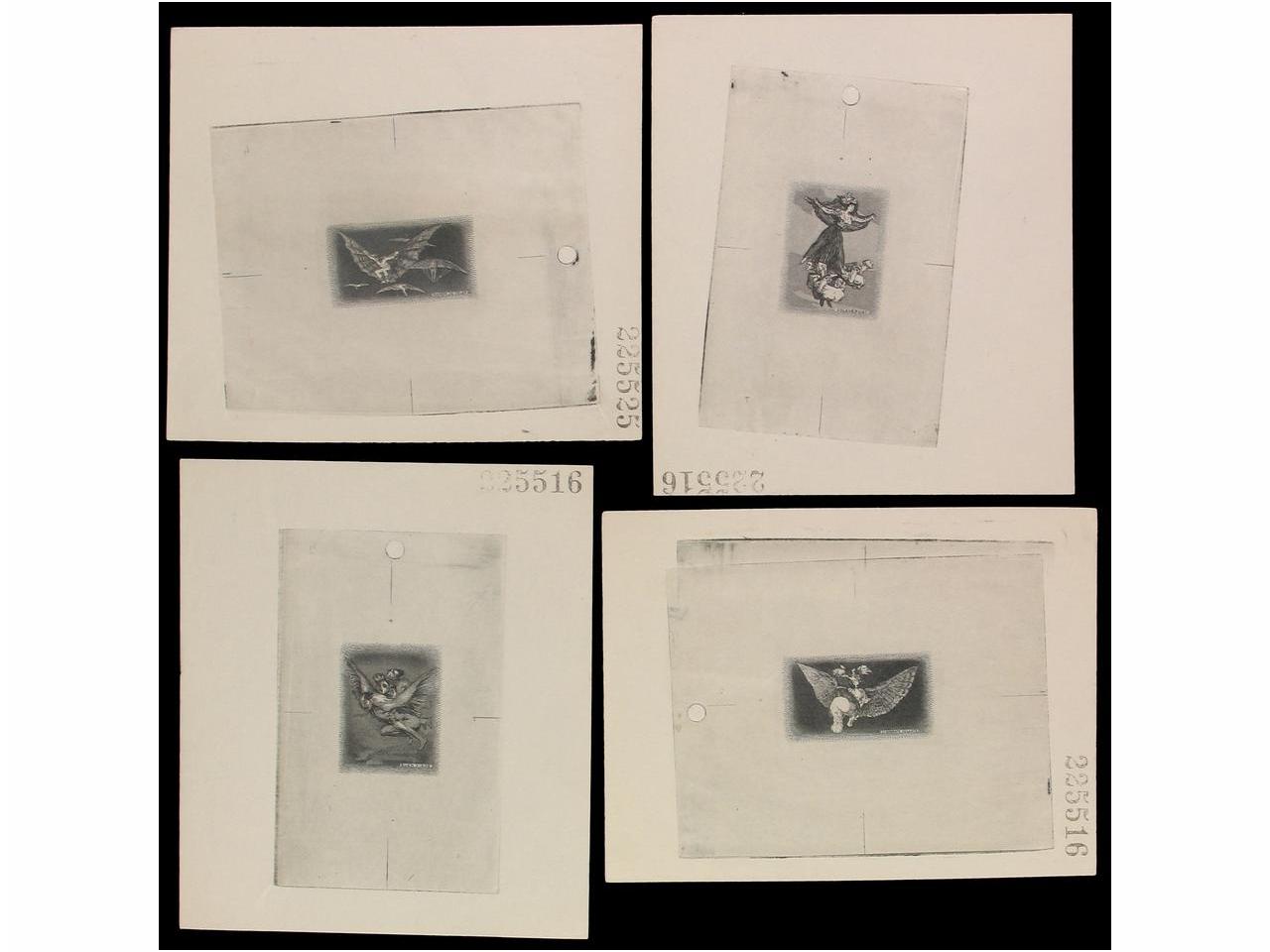 de una emisión. Este es el caso de este cartón con tres bocetos dibujados a mano por