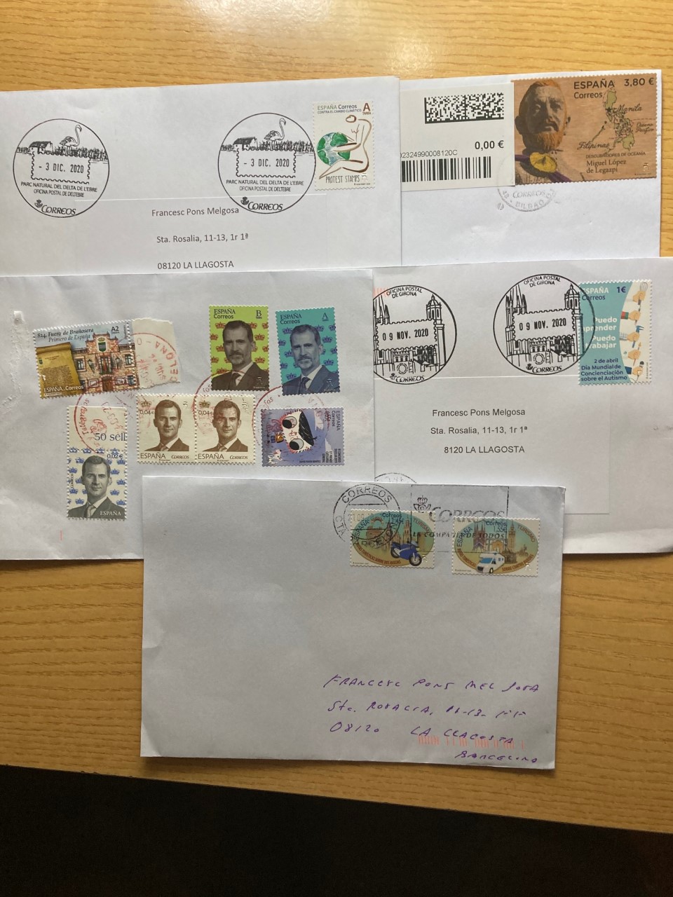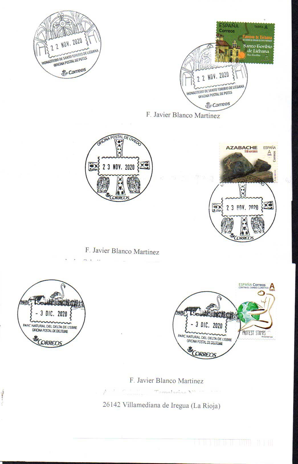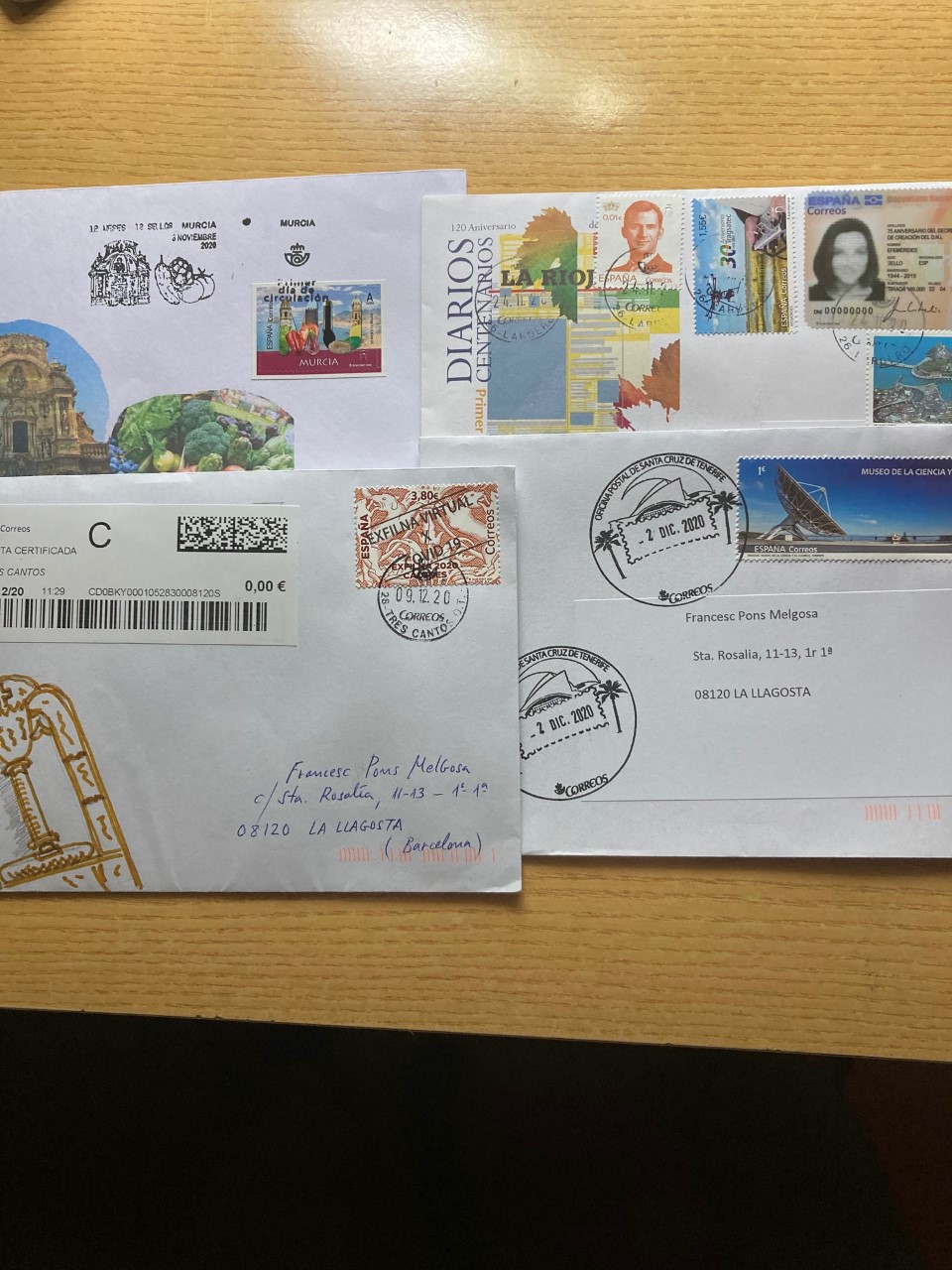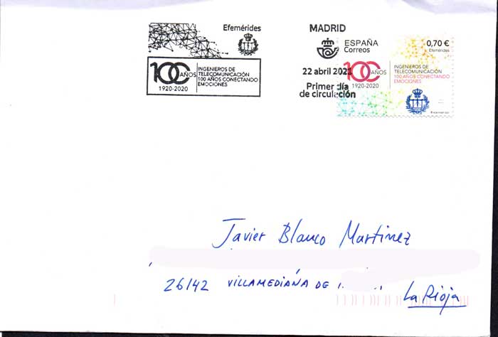 Después de estar unos días fuera, en mi buzón estaban los envíos de Javier 500 centenario de Logroño de FMP del parque de Cabárceno, de José Luis Centenario de los Ingenieros de Telecomunicaciones y el que mío que mande a Salamanca de 12M12 Sellos, igual que el mostrado por José Luis y Kiko, sin ningún matasellos complementario como le ha pasado a Javier?.