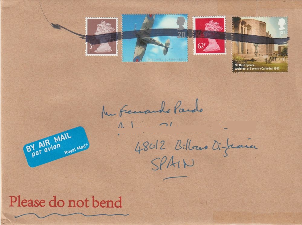Parbil, me da que el asesino carteril es el empleado británico. La correspondencia que recibo de allí, en cuanto sea mayor que una carta normal, es acribillada con la famosa y universalmente conocida y usada cancelación manual "BIC", bolígrafo de ordenanza en todo correo moderno que se precie.