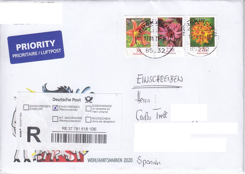 Dos sobres, de dos vendedores, recibidos con dos días de diferencia. Uno alemán y el otro español: