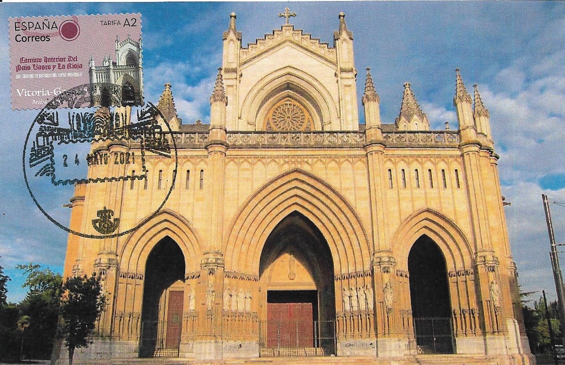 Es la Catedral de Vitoria y el matasellos es el interior de la Catedral