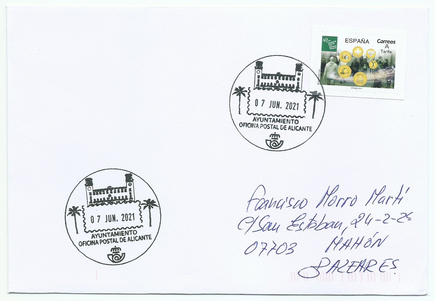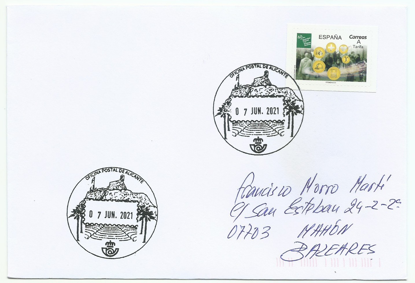 Hoy me han llegado las peticiones que tenía de los matasellos turísticos de Alicante con fecha 7 de junio que creo es primer día.