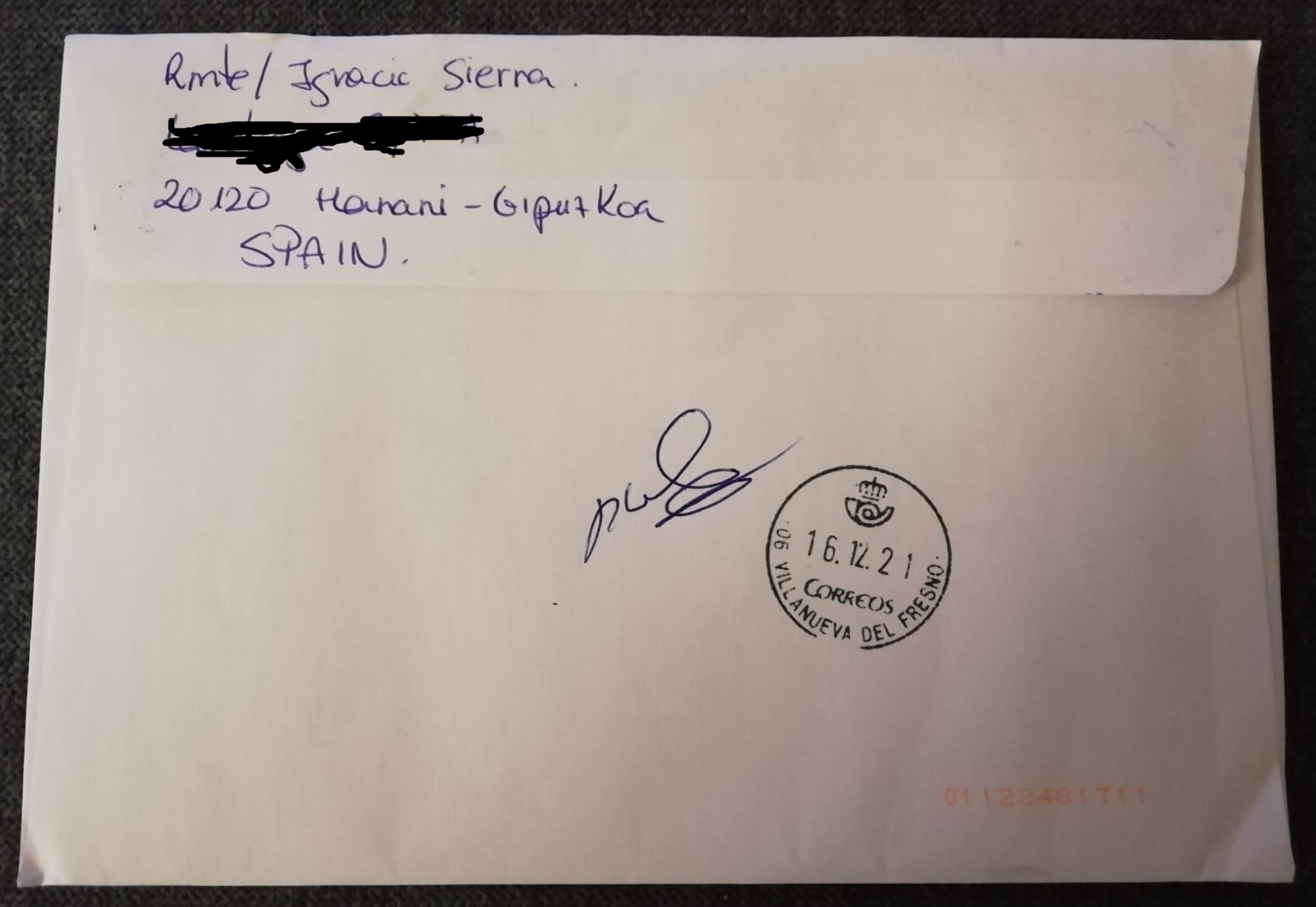 Hoy me llega la carta devuelta desde VILLANUEVA DEL FRESNO (BADAJOZ)!!!!