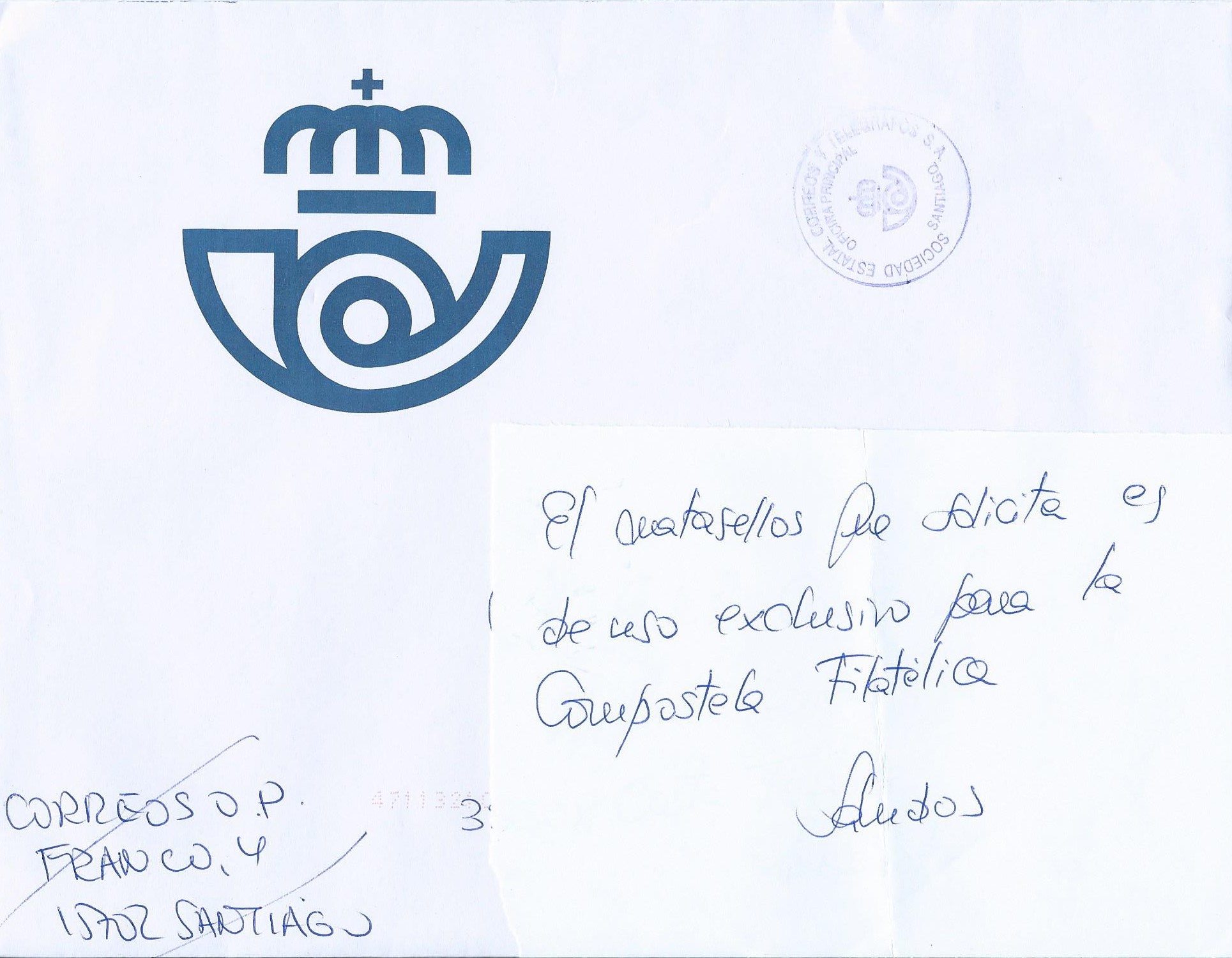 Hoy recibí sobre de Compostela, adjunto copia escaneada y breve escrito, devolución del sobre franqueado.