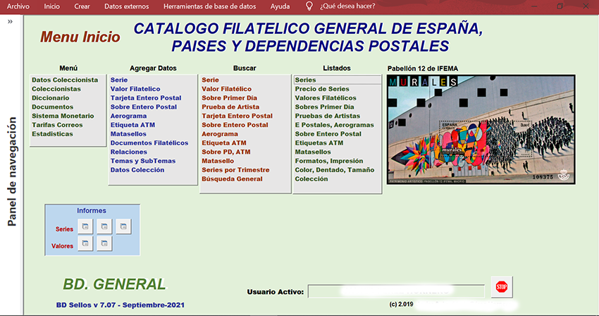 Como veis este es el Menú principal de la BD, desde aquí podemos acceder a todas las secciones enumeradas. dentro de cada sección, a la vez aparecen nuevos formularios e informes a imprimir de lo que se quiera.JarapaleS escribió: 26 Ago 2021, 18:56 Captura de pantalla 2021-08-26 18.49.10.png