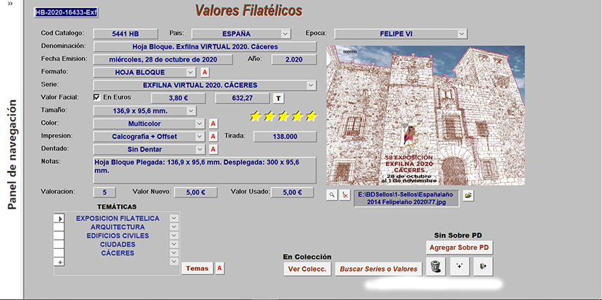 Como soy criado en la Ciudad de Cáceres, pues me ha dado por abrir la Serie Exfilna Virtual 2020 Cáceres, jejeje, aparecen todos sus datos y los valores que componen la Serie, aparte se puede imprimir informe con todos sus datos. Ver los SPD, la Prueba, abrir los Valores, ver sus imagenes... etc etc...