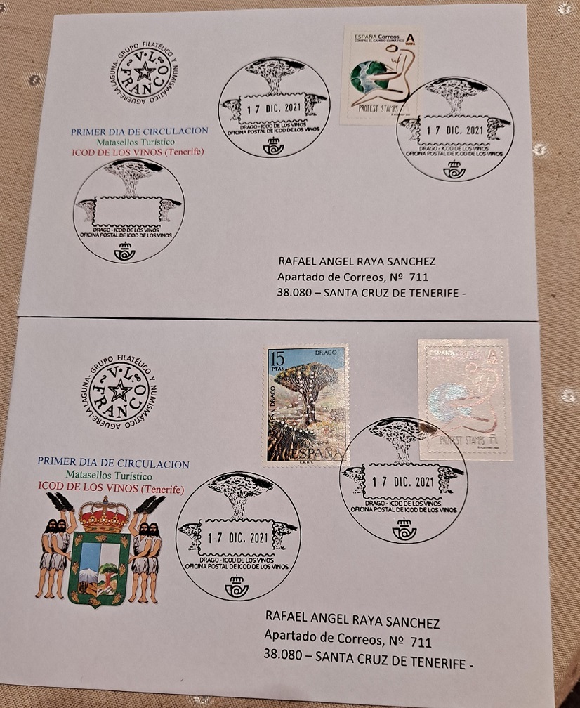 Confirmo el primer día de circulación del Matasellos Turístico de ICOD DE LOS VINOS (TENERIFE) el día: 17 de diciembre de 2021.