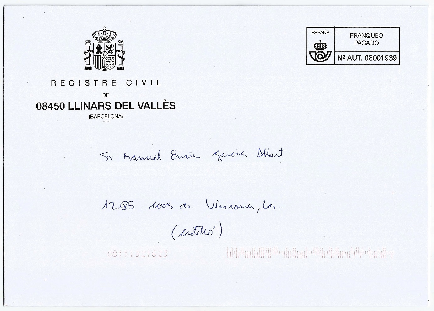 Hola este franqueo que pongo esta catalogado como Ayuntamiento de Palafrugell que es de la provincia de Girona y tiene el código 08 de Barcelona. Alguien sabría decirme a que se debe??