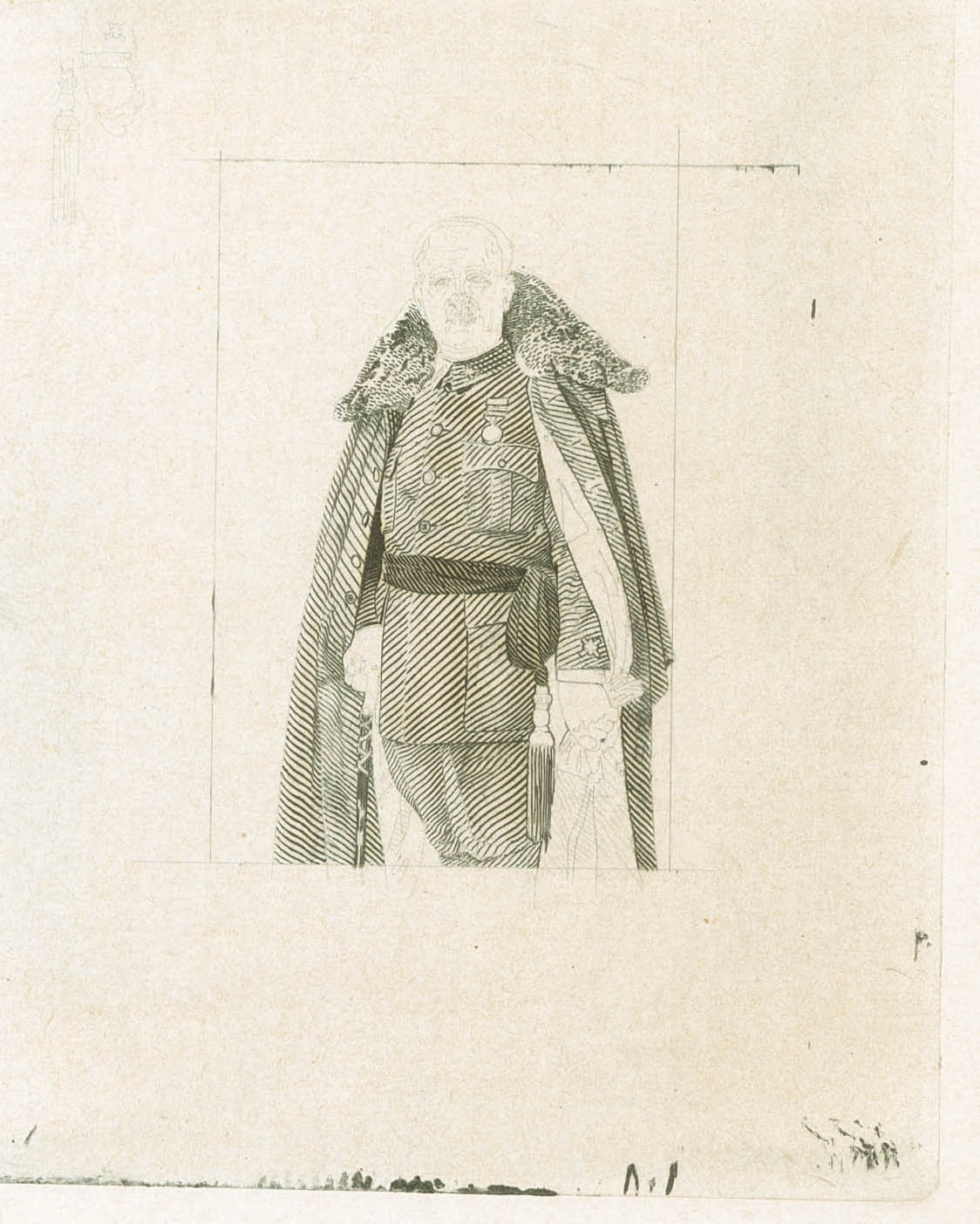 Sin cifra del valor, negro. PRUEBA DE PUNZON, de un estado intermedio y un diseño no adoptado (se utilizó, en formato más pequeño para la emisión de 1948) con la efigie de Franco en formato grande. MAGNIFICA Y EXTRAORDINARIAMENTE RARA.