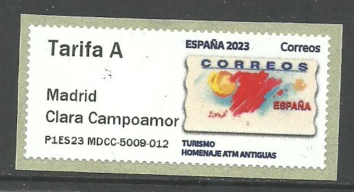 Hay alguien que me pueda conseguir una etiqueta ATM de cada modelo de la EXFILNA 2023 y la JUVENIA 2023 solo con la Tarifa "A" con el dibujo alegórico de la etiqueta pero de la Máquina de pié ES01 (B4ES23 ES01 0001-001). Enviar un mensaje privado. Gracias......
