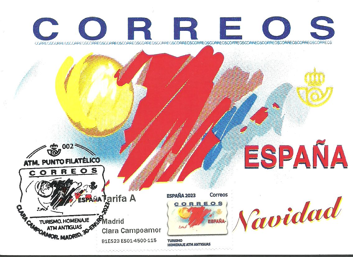 Todavía no se había dicho, pero este año hubo otra novedad en enero. En el stand de Burgos se vendieron ATMs del modelo Turismo, impresos en Madrid con la matrícula correspondiente al Servicio Filatélico: MDCC (Madrid Clara Campoamor) y que sustituye al famoso CH más el año de emisión. Desconocemos si va a ser práctica habitual llevar impresos ATMs de las anteriores emisiones...