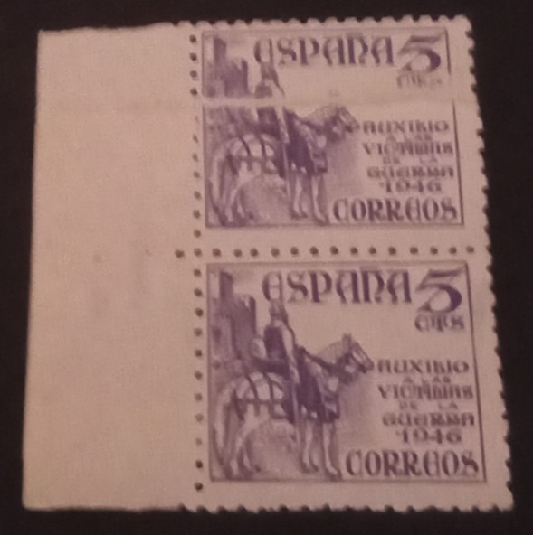 Repasando los sellos que tengo de este tema, os muestro un bloque de 9 con matasellos de Andújar 21 de enero de 1953, ya cuando era utilizado como sello de franqueo.