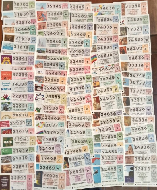 Decenas de DECIMOS DE LOTERIA todos diferentes.