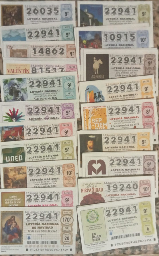 Mis números; 115 / 216 / 317 / 490 / 584 / 664 / 744 / 864 / 885 / 955.