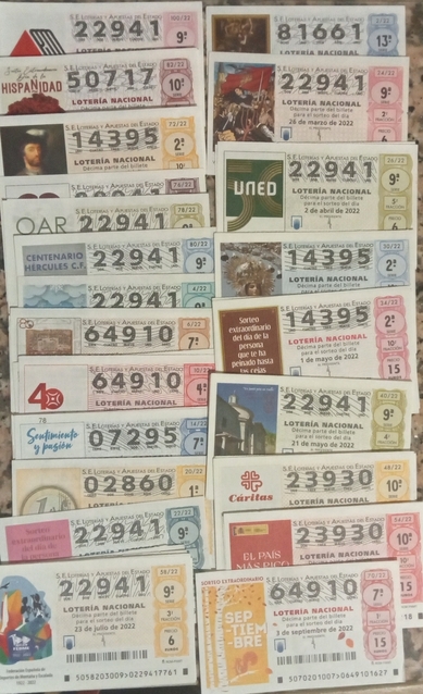 Mis números; 115 / 216 / 317 / 490 / 584 / 664 / 744 / 864 / 885 / 955.