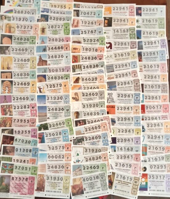 Decenas de DECIMOS DE LOTERIA todos diferentes.