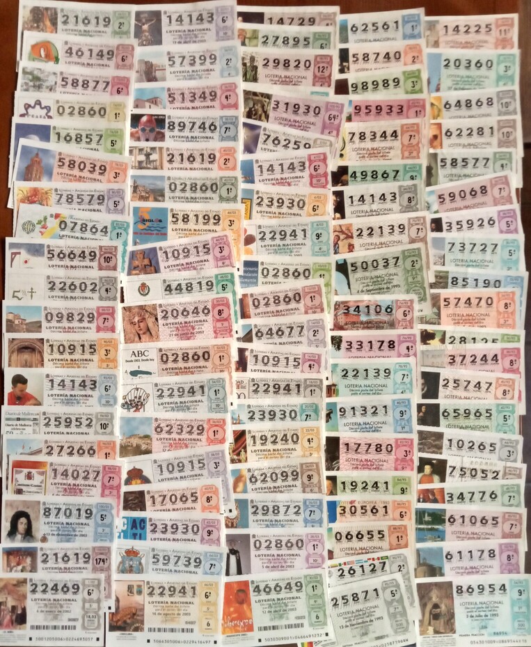 Decenas de DECIMOS DE LOTERIA todos diferentes.