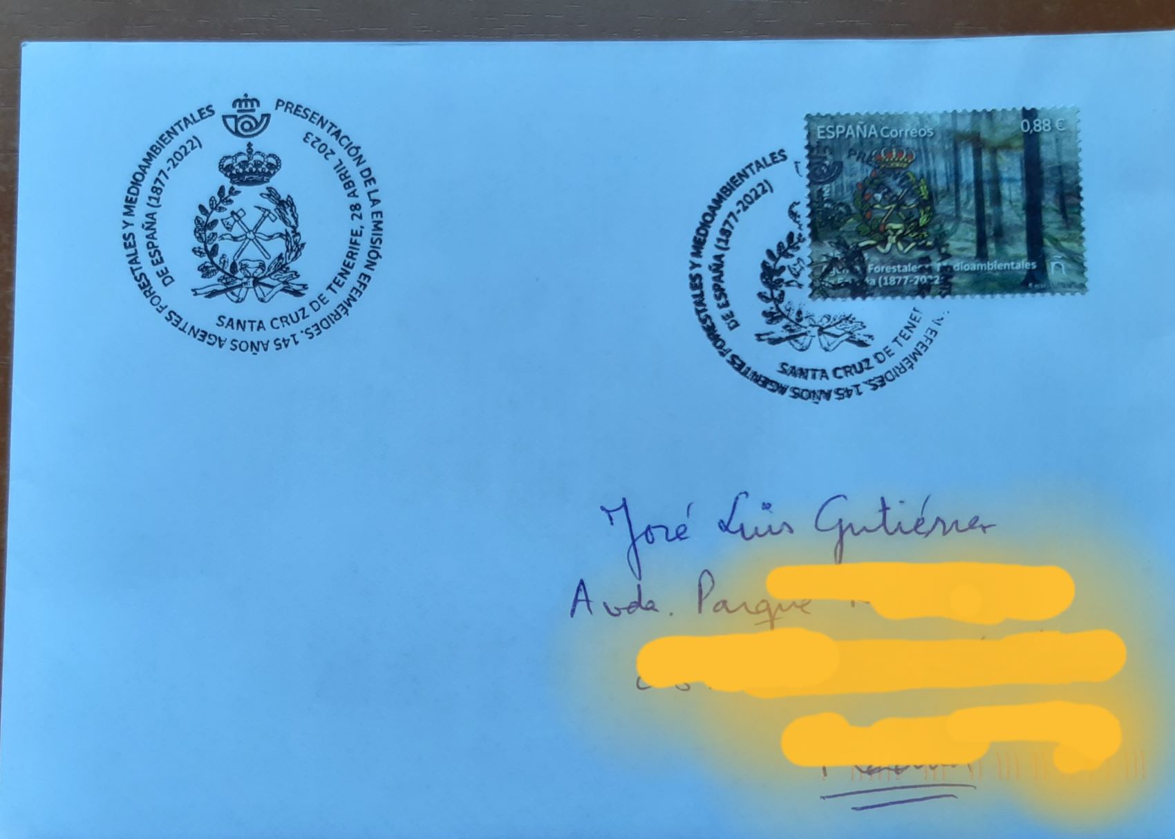 Recibidos el de Tenefe Agentes medioambientales igual que el mostrado, y otro mas FMP con el sello de Sorolla y bonito sobre dibujado , artístico si señor, que muestro.