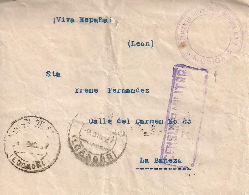 Esta con le identificación Regimiento de Música, desde Rincón de Soto (Logroño) a La Bañeza (León)